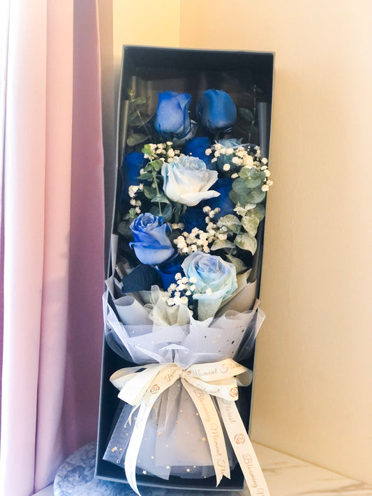 [FRESH FLOWER] Fantasy blue rose bouquet in long gift box