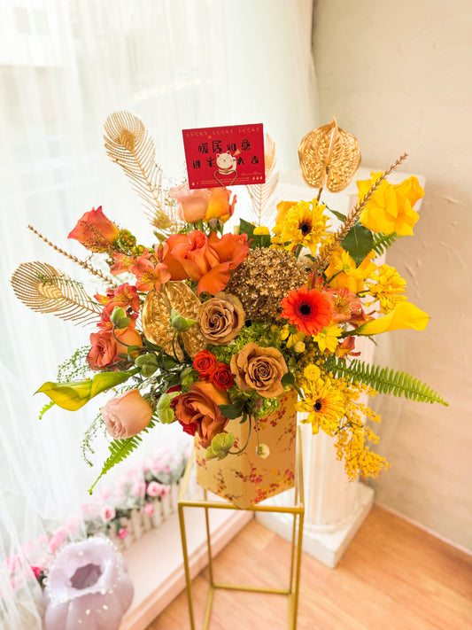Red Double Happiness Bridal Bouquet Preserved Flower in Picture Frame