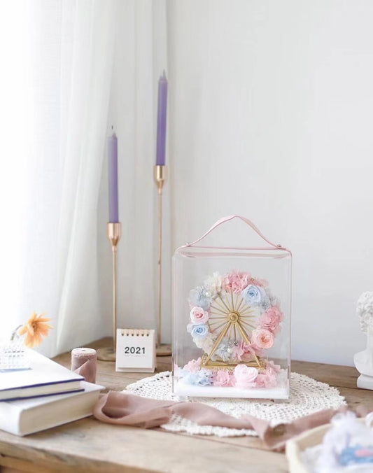 心形粉色渐变镜面亚克力盒保鲜玫瑰
